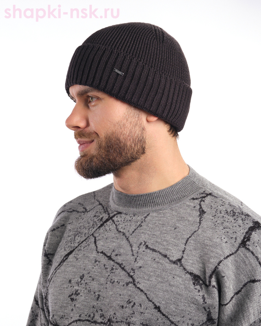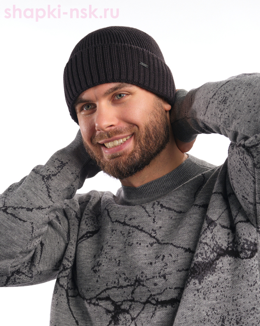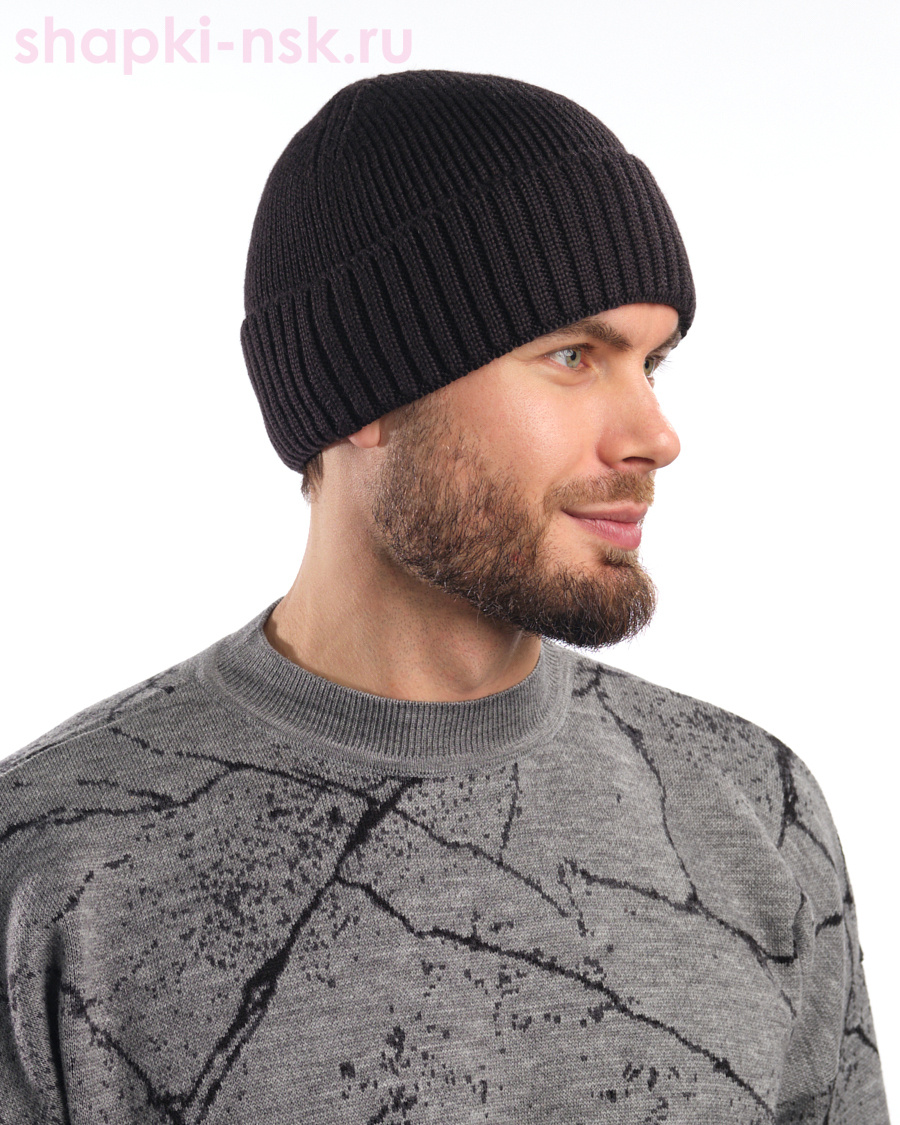 Мужская шапка по голове с широким отворотом в однотонной расцветке из качественной шерстяной пряжи. Модель дополнена плотным подкладом из флиса, что обеспечит тепло и комфорт зимой.
